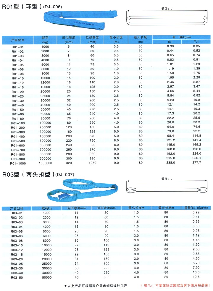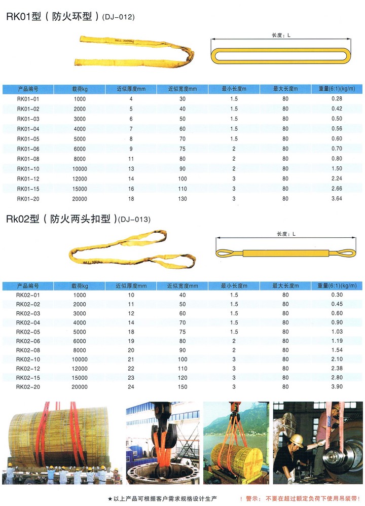 對于圓環吊裝帶來說,目前市場產品大都選用合成纖維的材料。在吊裝環境的不同需求下,有著普通型、熒光型、防火型,以及高情形與組合型等產品系列。圓環吊裝帶的主要組成結構,包含承載芯與吊帶保護套兩個部分。前者擁有著無極環繞的平行排列,而后者則由特質耐磨套管,進行對接成環形式連接。保護套的主要作用,就是警示與保護承載芯的安全規范使用。